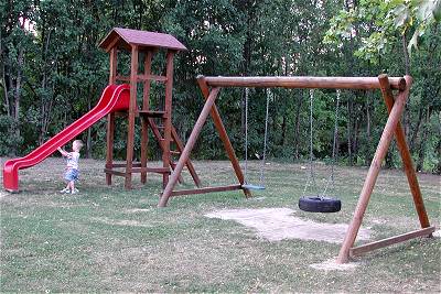 ![]() (2) Klettergerüst mit Schaukel und Rutsche |